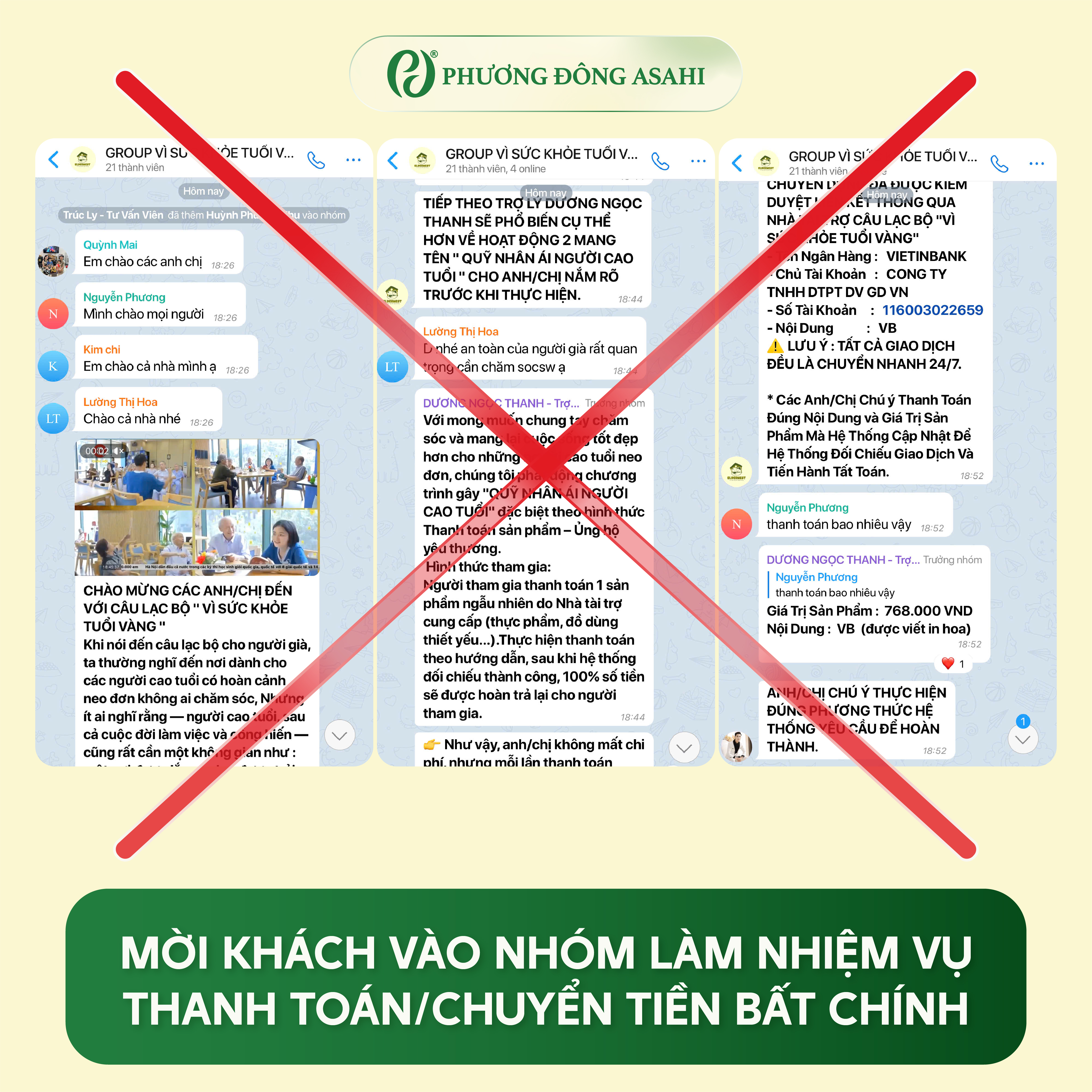 Thời gian gần đây, xuất hiện một số trang/kênh mạo danh thương hiệu Phương Đông Asahi để lợi dụng lòng tin khách hàng nhằm mục đích lừa đảo và trục lợi bất chính.