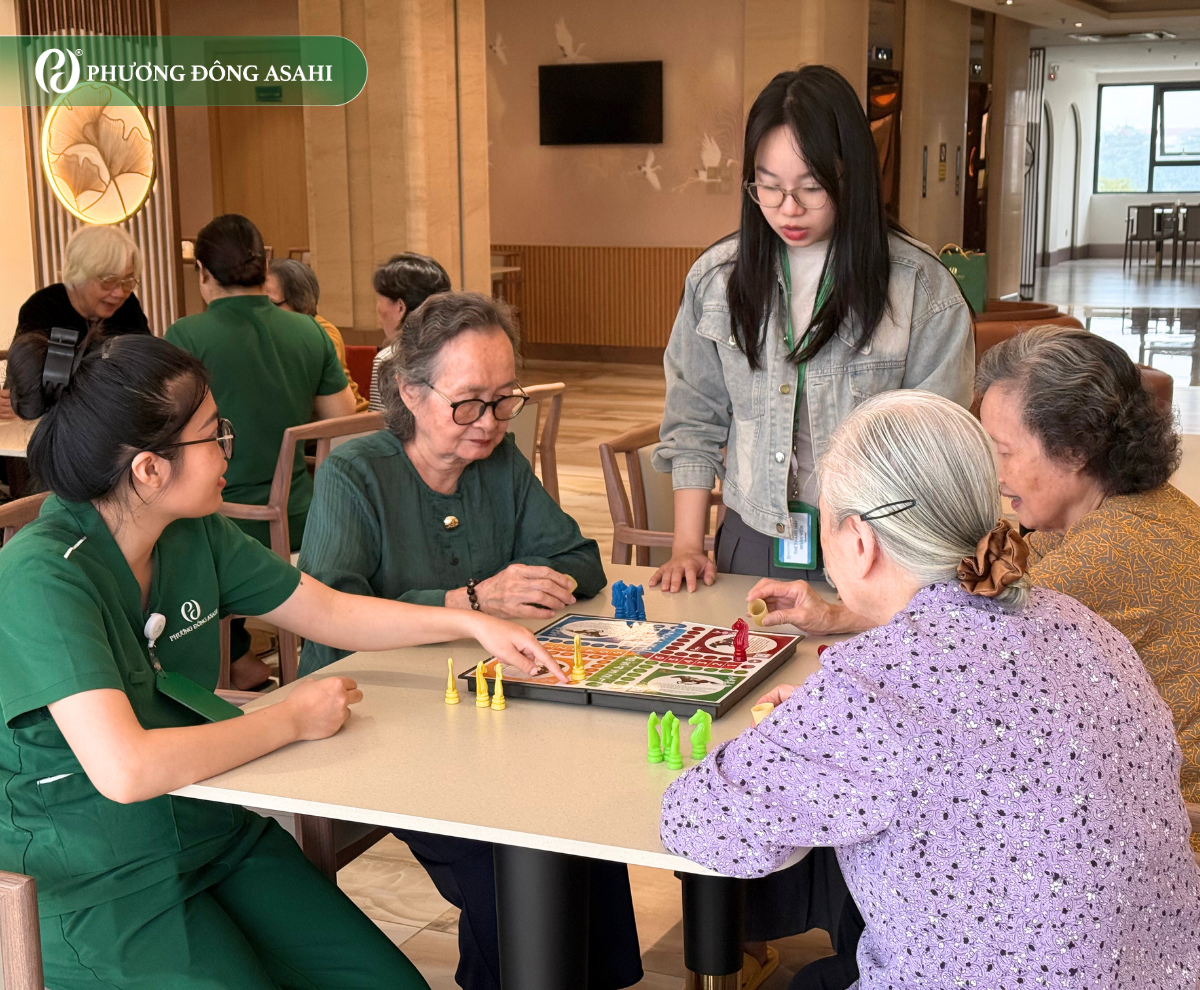 Trong những lần trò chuyện, điều khiến cả bốn bà nhắc đến nhiều nhất khi nói về Phương Đông Asahi chính là sự chăm sóc chu đáo và tận tâm, không vội vàng, không qua loa. Từ lúc trải nghiệm dịch vụ đến khi di chuyển giữa các khu, ngay cả những hoạt động nhỏ hàng ngày, các cháu luôn bên bà, đưa bà đi đến nơi về đến chốn, từng bước đi cũng được dắt tay cẩn thận, nhẹ nhàng.