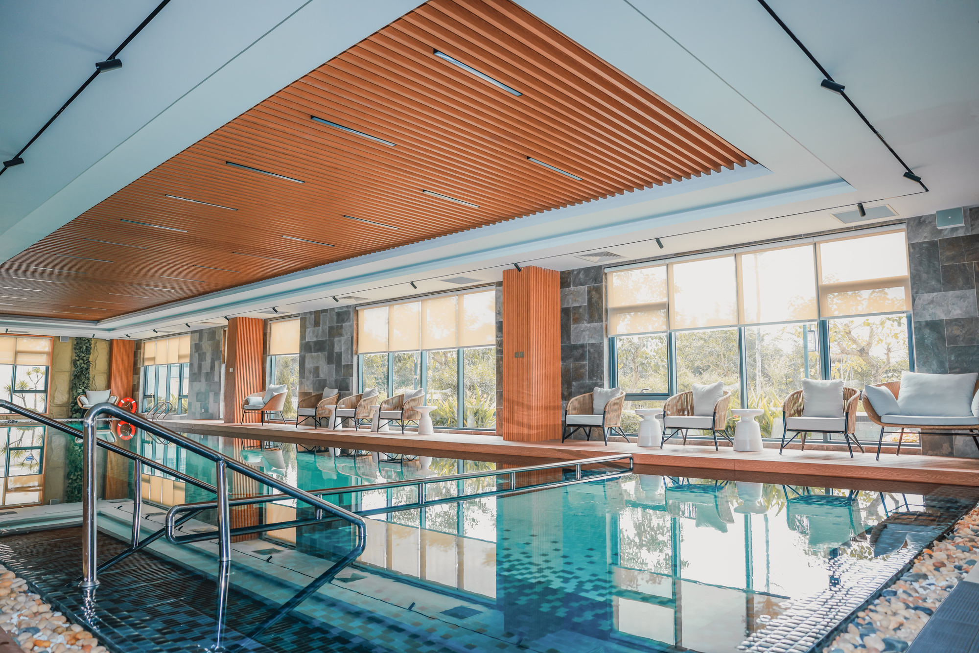 Bể bơi bốn mùa trong nhà rộng gần 200m², sử dụng công nghệ lọc Ozone hiện đại, không mùi hóa chất, an toàn cho thể trạng người cao tuổi. Nhiệt độ nước trong hồ bơi duy trì 28-33°C, giúp cư dân thư giãn, vận động nhẹ nhàng và phục hồi thể chất bốn mùa trong năm.