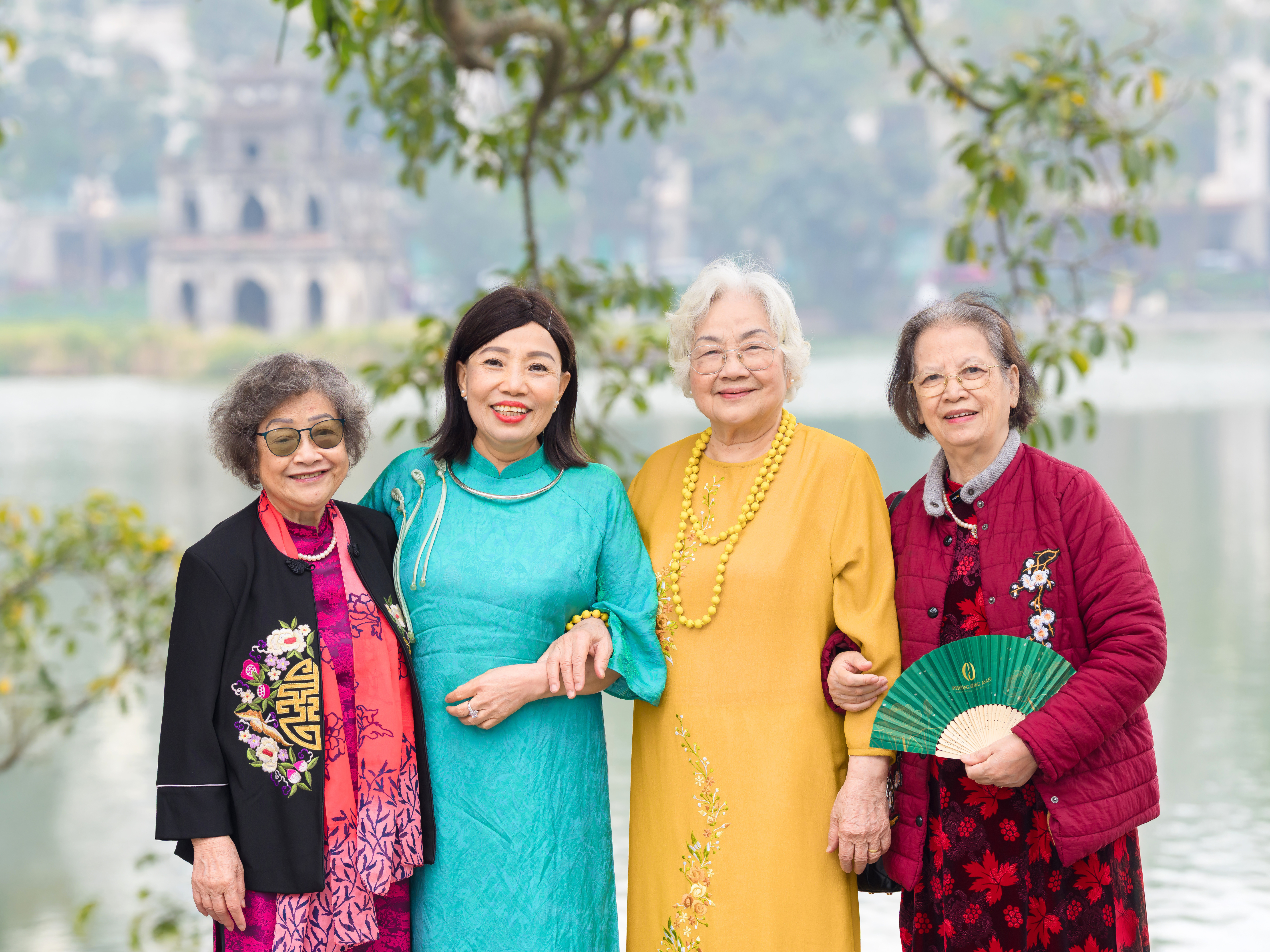 Tại Phương Đông Asahi, bà Được cùng các cụ khác chụp ảnh trong khuôn viên. Dưới những tán đào nở sớm, các cụ trò chuyện, chia sẻ hình ảnh chuyến du xuân phố phường và tạo dáng chụp thêm bộ ảnh áo dài tại khuôn viên viện dưỡng lão.