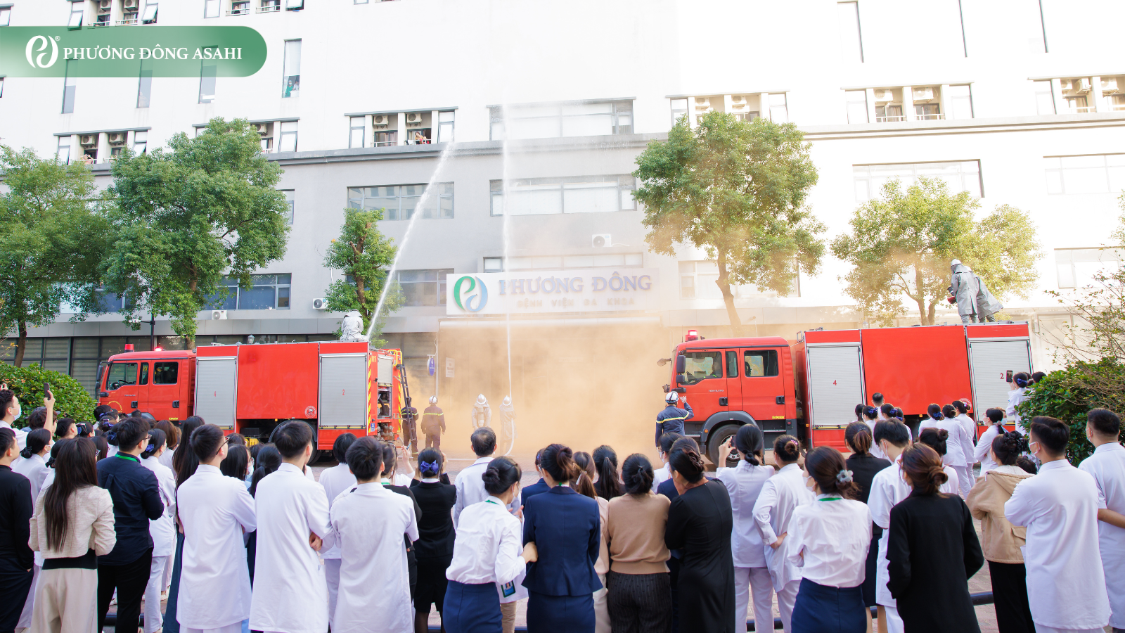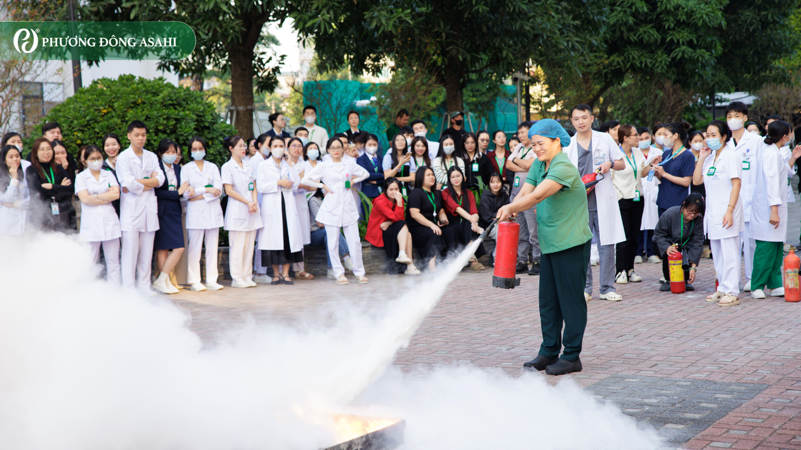 Tại chương trình, các cán bộ nhân viên của Bệnh viện Đa khoa Phương Đông và Phương Đông Asahi đã được Công an PCCC phường Đông Ngạc hướng dẫn chi tiết về quy định pháp luật liên quan đến công tác PCCC - CNCH, những nguyên nhân thường dẫn đến cháy nổ và các biện pháp phòng ngừa. Bên cạnh đó, học viên cũng được thực hành kỹ năng xử lý tình huống, kỹ năng thoát hiểm và phương pháp chữa cháy khi xảy ra sự cố.