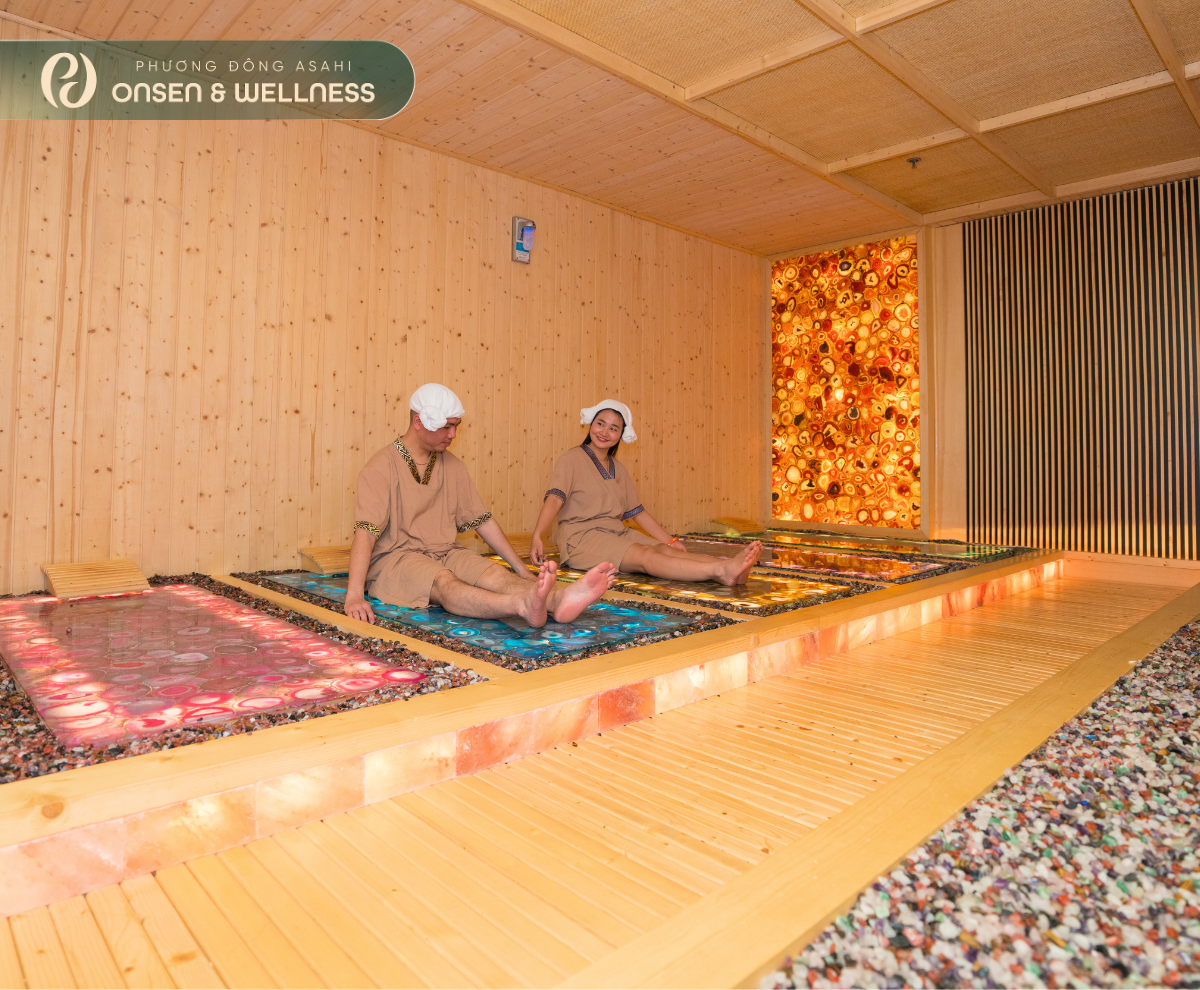 Tai Phương Đông Asahi Onsen & Wellness, phòng xông đá quý được thiết kế sang trọng, ấm cúng, giúp Quý khách hàng có trải nghiệm hoàn hảo và trọn vẹn nhất.